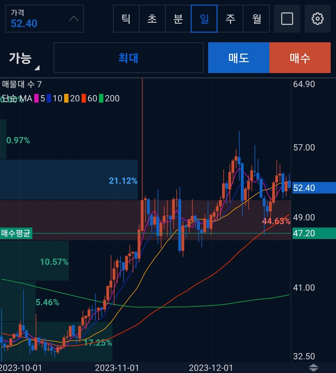 비트코인이 6100만원을 터치하고 현제 5700만원대를 기록중이다. 현재 나는 6100만원대에서 20%의 비트코인을 익절하고 대기중이다. 2023년 12월 01일 업비트 원화마켓의 모든 알트코인을 1만원씩 매수했고 넴(XEN)코인은 현재 평균매수가 47.20원 현재가 52.40원으로 11%정도의 수익구간을 유지하고 있다.