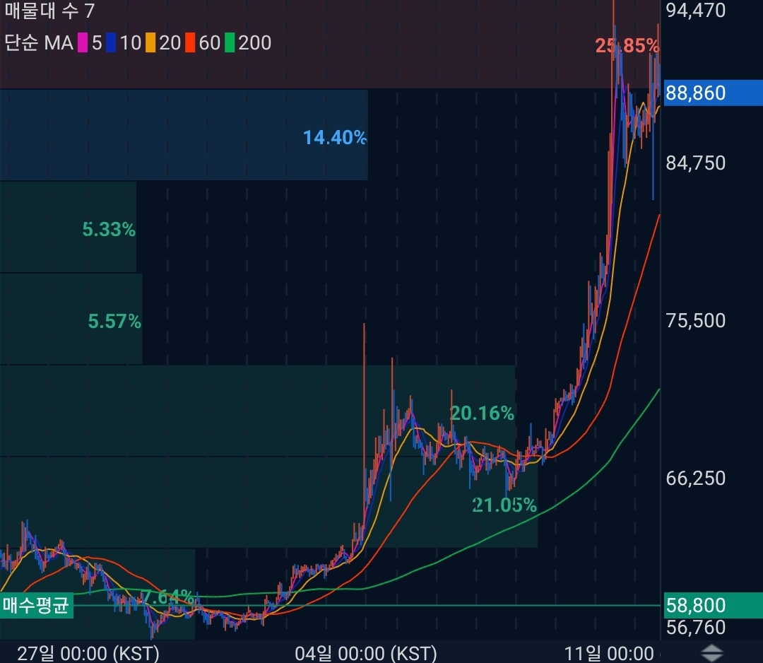 2023년 12월 01일 업비트 원화마켓의 모든 코인을 1만원씩 구매했습니다. 이번 시간에는 멀티버스엑스(EGLD) 코인에 대한 상황을 알아보겠습니다. 구매가는 58800원 현재가 88950원 51% 수익중입니다. 순환매에서 펌핑오는 코인을 팔고 오르지 않은 코인으로 옮겨가면서 수익을 낼 계획입니다.
