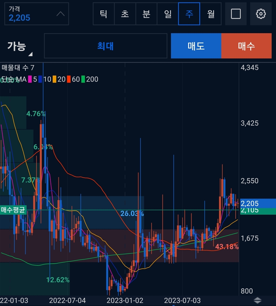 비트코인이 6100만원을 터치하고 현제 5650만원대를 기록중이다. 현재 나는 6100만원대에서 20%의 비트코인을 익절하고 대기중이다. 2023년 12월 01일 업비트 원화마켓의 모든 알트코인을 1만원씩 매수했고 메탈(MTL)코인은 현재 평균매수가 2105원 현재가 2200원으로 5%정도의 수익구간을 유지하고 있다.