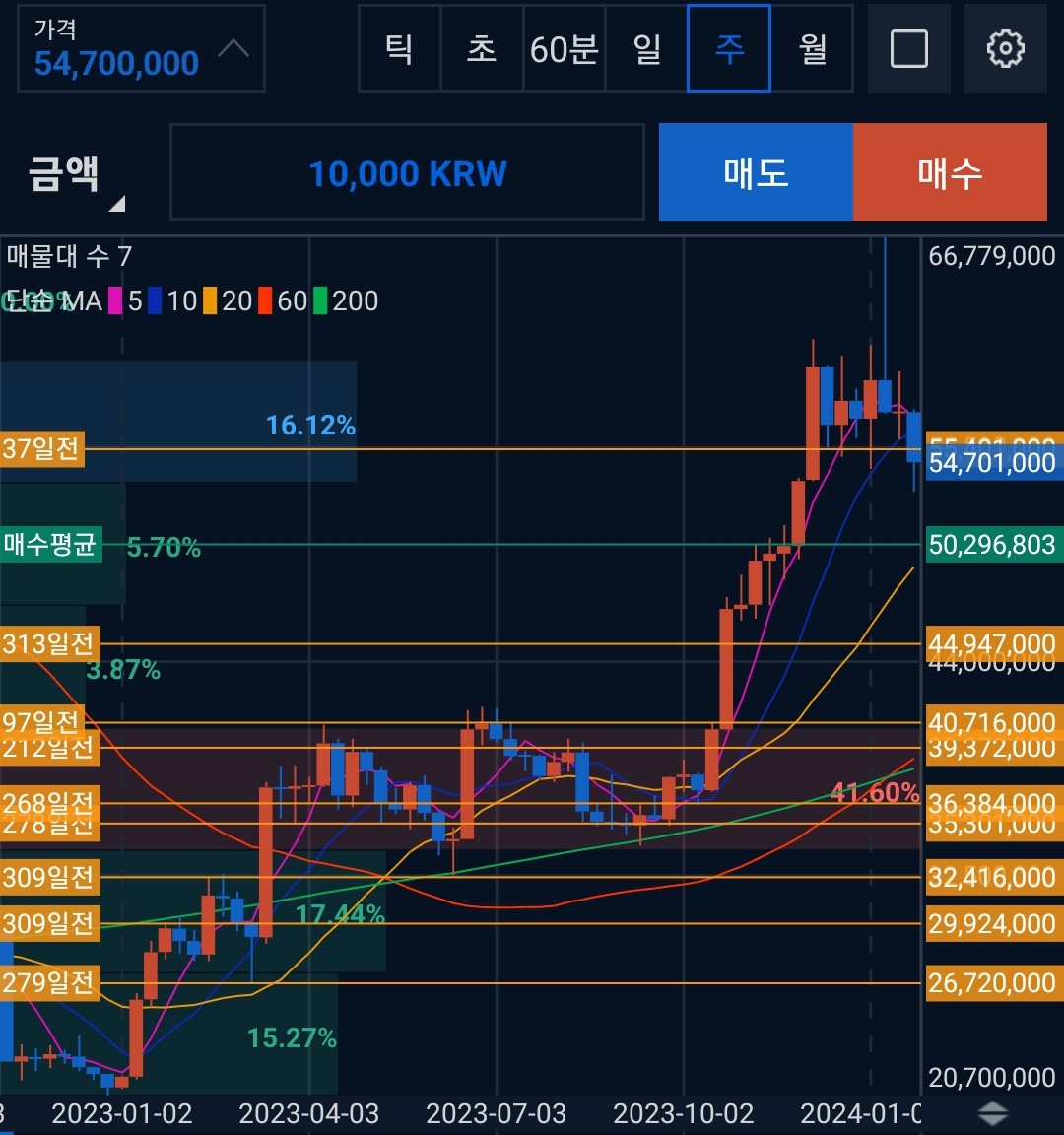 2024년 ETF와 반감기,금리인하, 한국총선 미국 대선까지 여러가지 이벤트가 준비되어 있습니다. 23년 12월 21일 현재 비트코인은 43.2k 한화 5920만원대를 기록중입니다. 비트코인은 당연히 모아야가