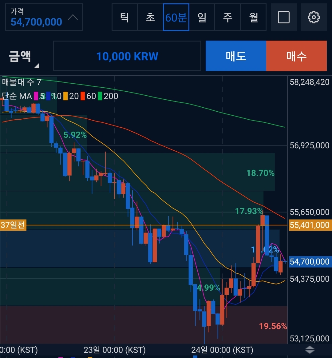 아직 나는 현금 50%를 가지고 있고 하루에 1만원씩 비트 코인을 사고 있다. 그리고 내가 원하는 금액이 왔을때 큰 금액을 투자할 계획이다. 1차 37k, 2차 32k, 3차 30K 이렇게 투자 계획이고 30K가 깨진다면 지쳐보다가 나머지 모든 금액을 털어넣고 물릴것이다.