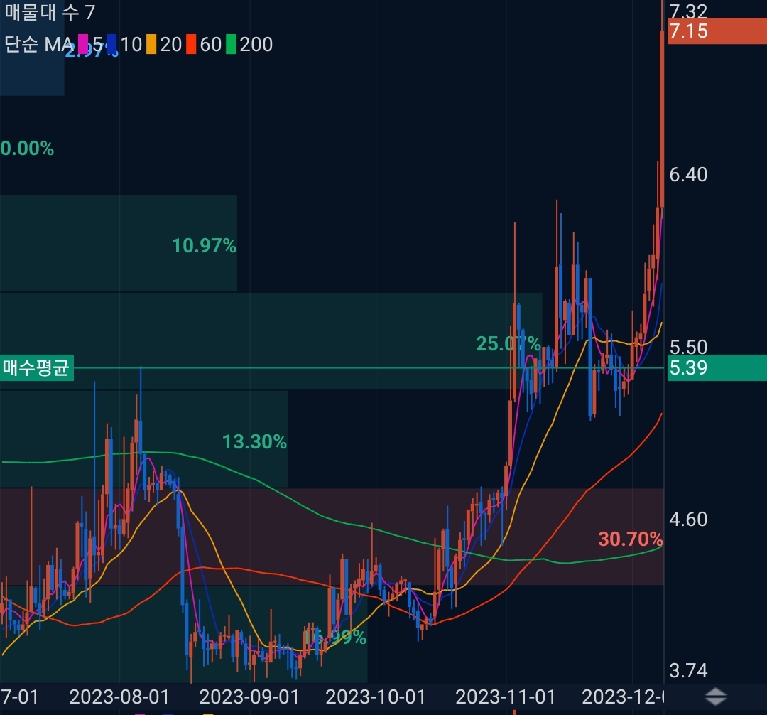 2023년 12월 01일 업비트 원화마켓의 모든 코인을 1만원씩 구매했습니다. 이번 시간에는 엠블 코인에 대한 상황을 알아보겠습니다. 구매가는 5.39원 현재가 7.05원 30% 수익중입니다. 순환매에서 펑핑오는 코인을 팔고 오지 않은 코인으로 옮겨가면서 수익을 낼 계획입니다.