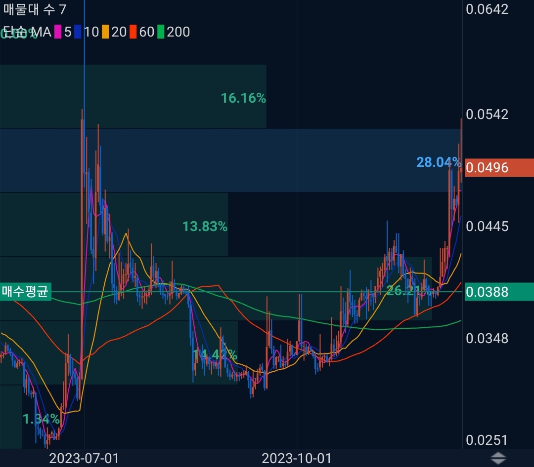 2023년 12월 01일 업비트 원화마켓의 모든 코인을 1만원씩 구매했습니다. 이번 시간에는 엠블 코인에 대한 상황을 알아보겠습니다. 구매가는 0.0388원 현재가 0.0496원 27% 수익중입니다. 순환매에서 펌핑오는 코인을 팔고 오르지 않은 코인으로 옮겨가면서 수익을 낼 계획입니다.